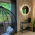La villa dispone di una cucina completamente attrezzata, di una zona pranzo all'aperto per cucinare e cenare. Il self-catering in loco comprende anche un microonde, un frigo e utensili da cucina. Gli ospiti possono raggiungere facilmente l'aeroporto Internazionale di Cracovia-Balice Giovanni Paolo II, situato a 38 minuti di auto da questa villa. Le freccette consentono agli ospiti di mantenersi attivi, mentre la piscina con trampolino, la jacuzzi e la sauna assicurano un soggiorno rilassante.